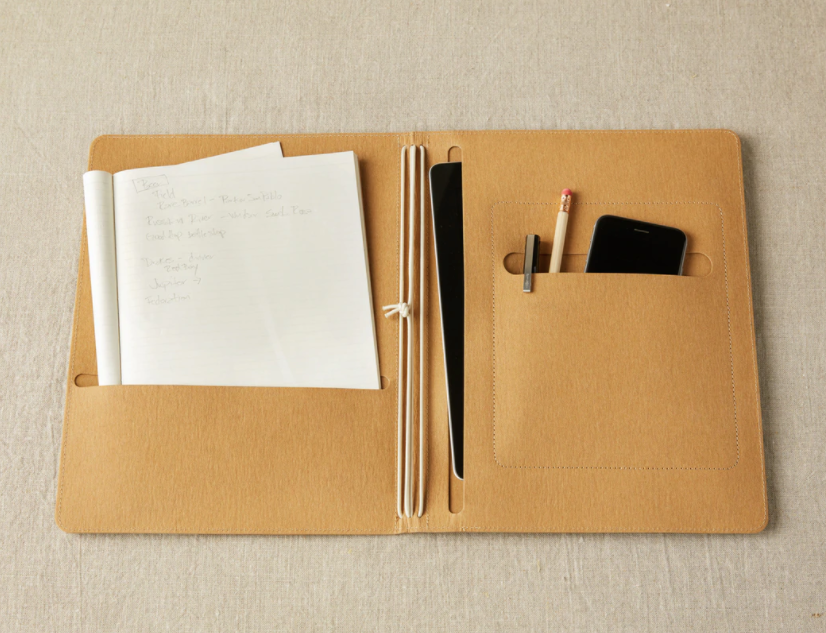 - inside back cover – horizontal for phone, pens, pencils, other small items